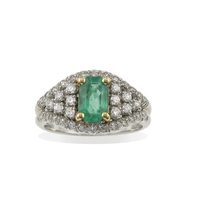 Emerald and diamond ring