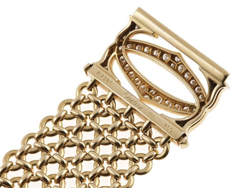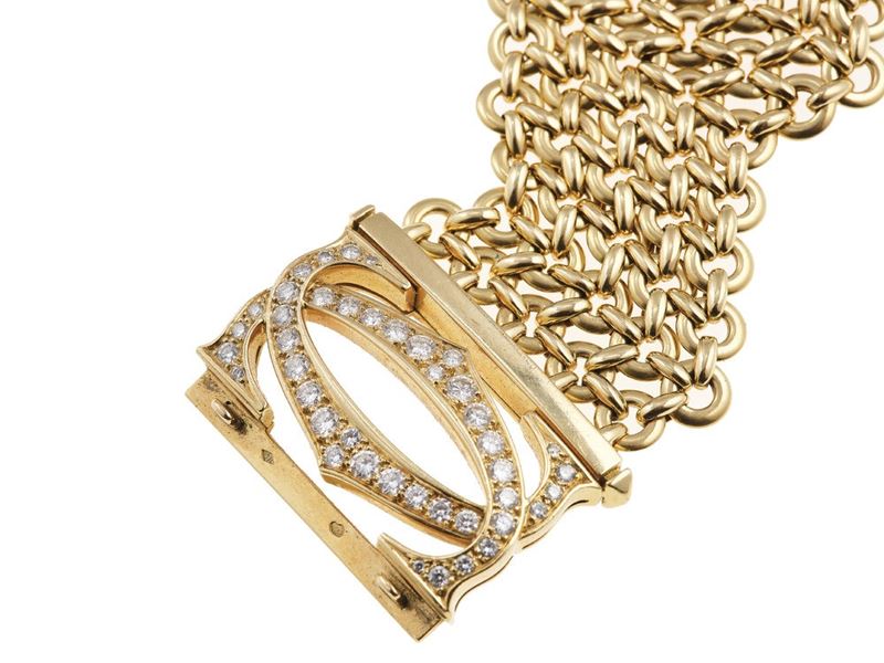 Gold and diamond bracelet. Signed and numbered Cartier n. 717384. Fitted case