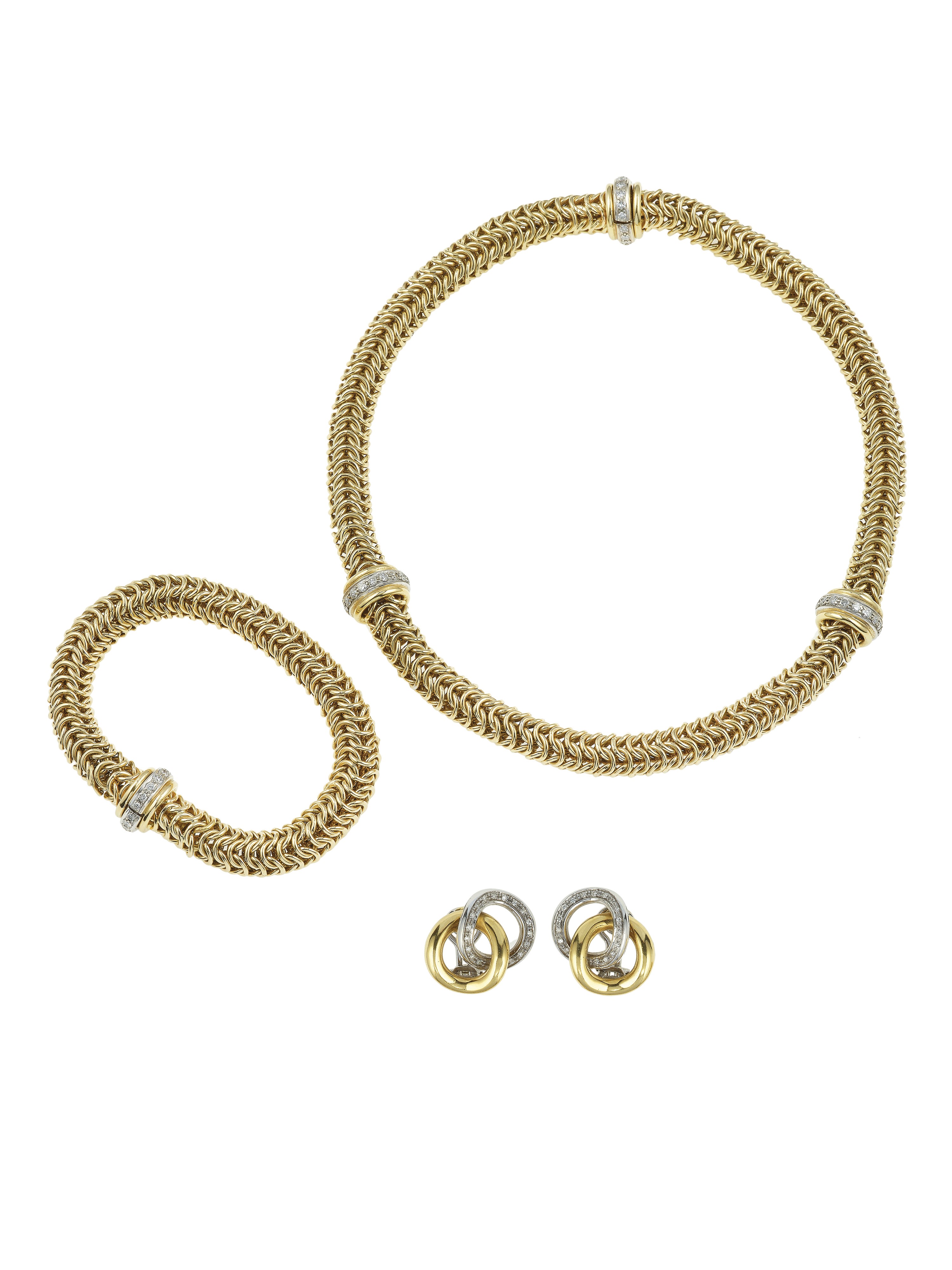 Gold and diamond demi-parure