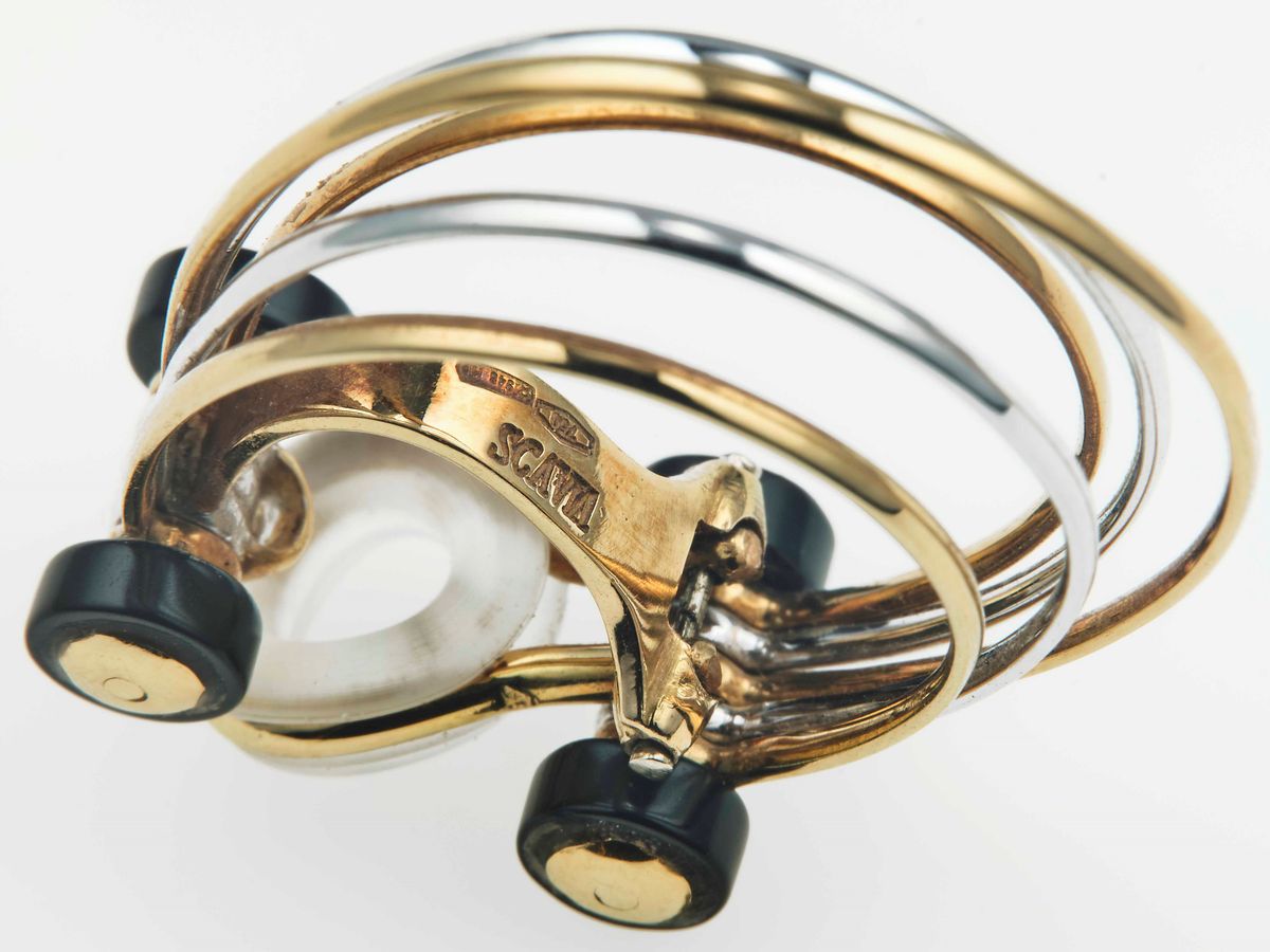 Gold and onix parure. Signed Scavia