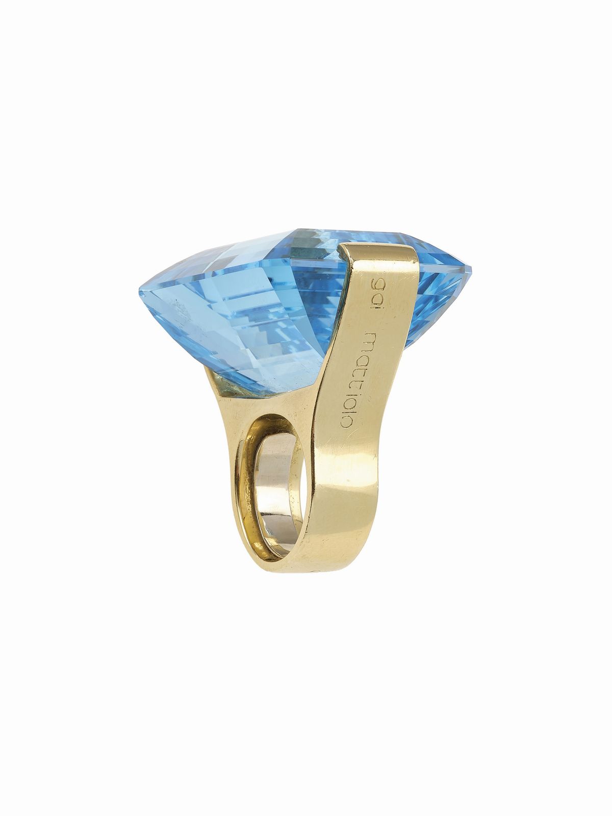 Gold and syntetic topaz ring. Signed Gai Mattiolo