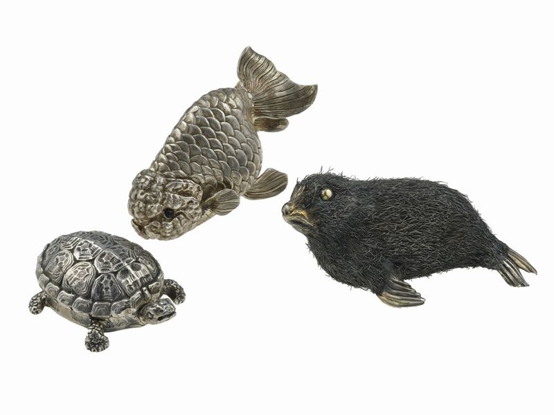 Group of three silver animals. Signed Mario Buccellati, Federico Buccellati and Buccellati