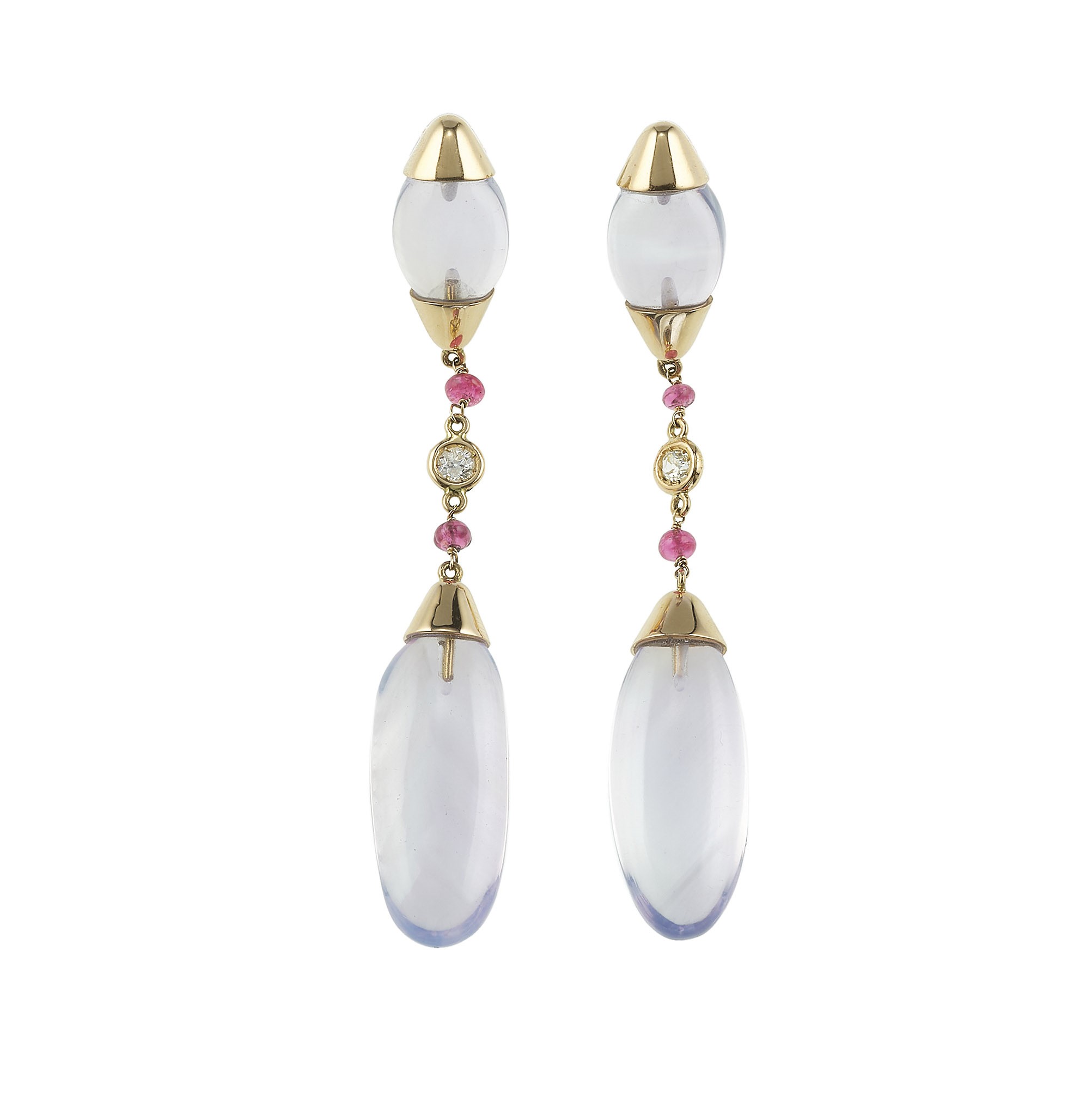 Pair of quartz, diamond and ruby earrings