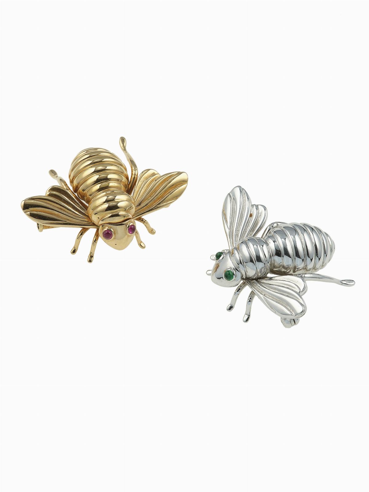 Two gold brooches. Signed Sabbadini. Fitted case