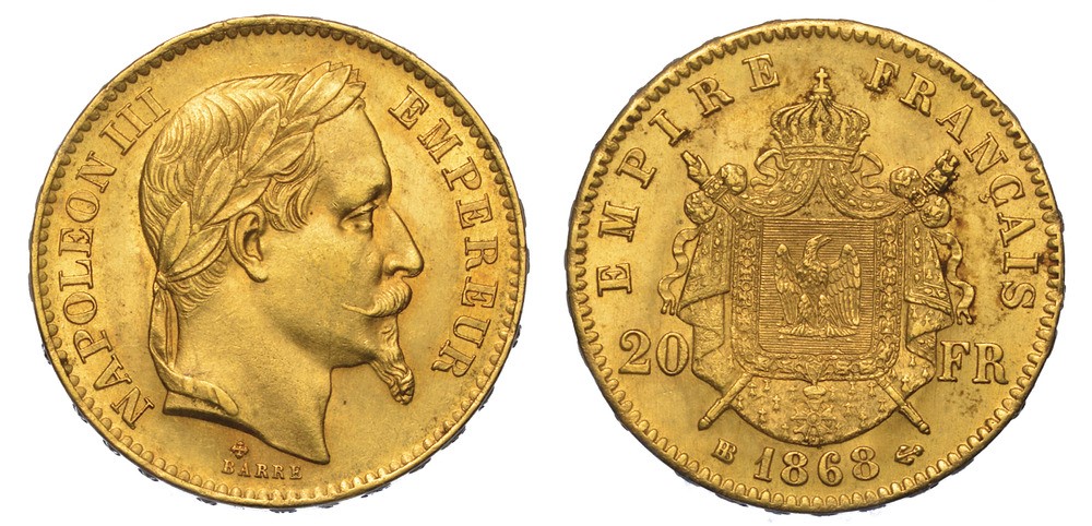 FRANCIA. NAPOLEON III, 1852-1870. 20 Francs 1868. Strasburgo.
