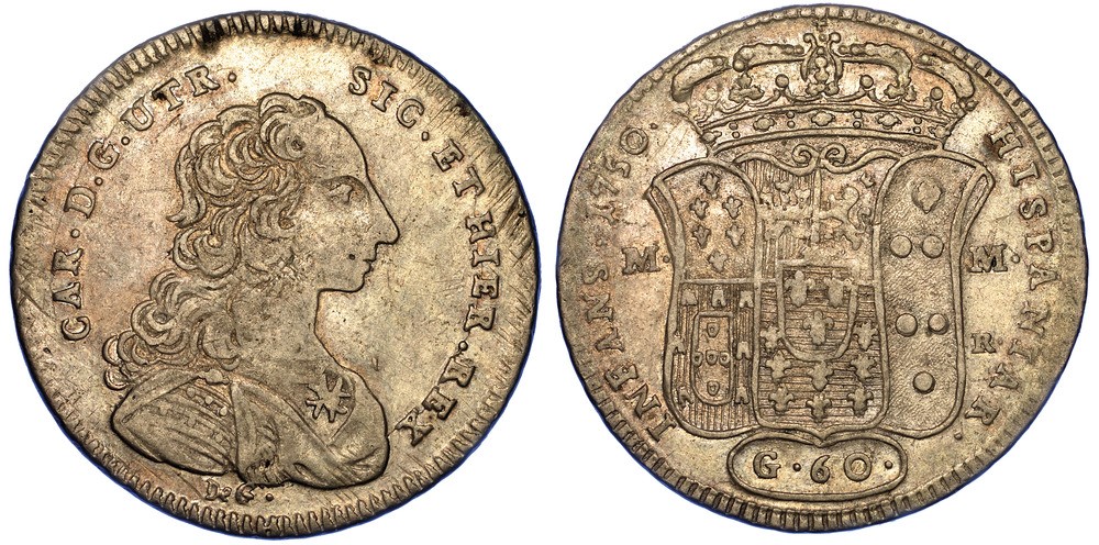 NAPOLI. CARLO DI BORBONE, 1734-1759. Mezza piastra da 60 Grana 1750.