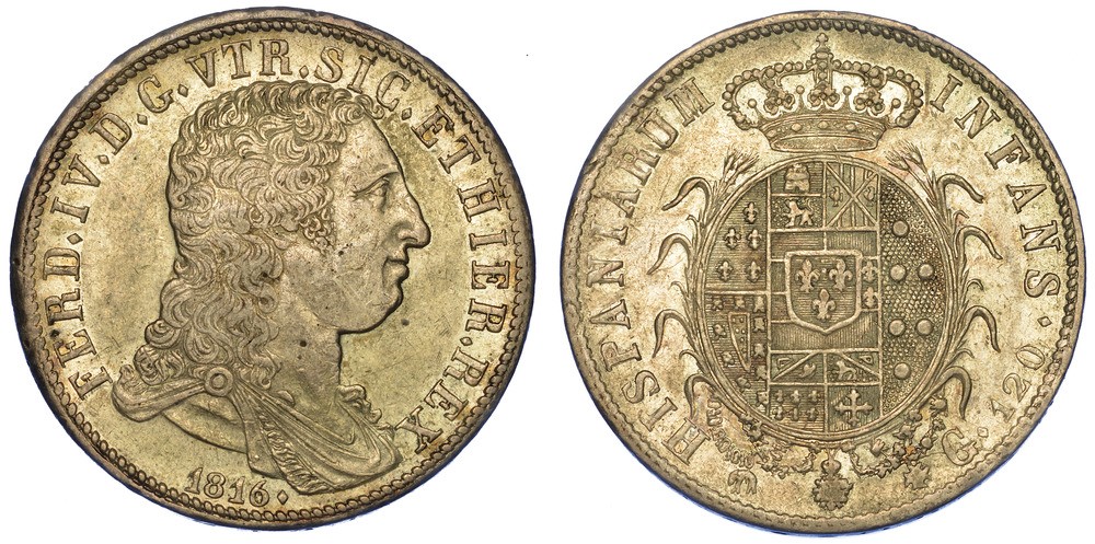 NAPOLI. FERDINANDO IV DI BORBONE, 1759-1816. Piastra da 120 Grana 1816.