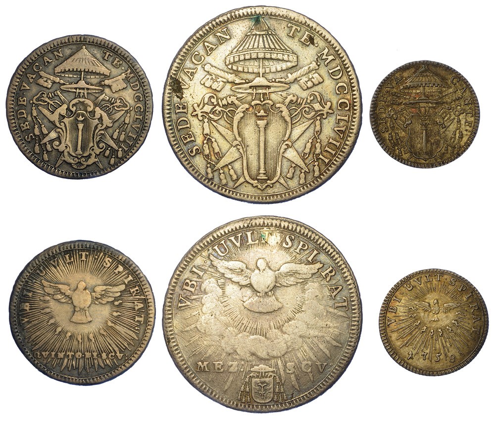 ROMA - SEDE VACANTE 1758. Lotto di tre monete.