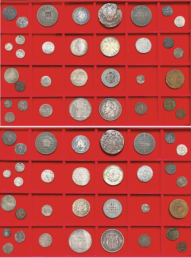 Esemplari di vari Stati europei e mondiali fra i quali si segnalano Brasile, Cina, Francia, Germania, Polonia e Russia. Databili dall'XI al XX secolo. Argento e rame. Conservazioni varie.
