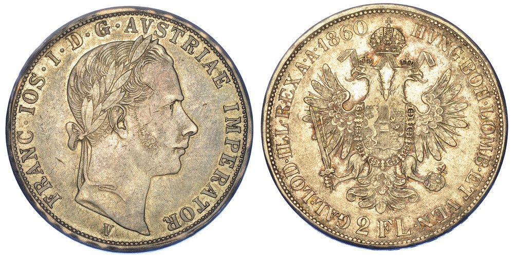 VENEZIA. FRANCESCO GIUSEPPE I D'ASBURGO-LORENA, 1848-1866. Da 2 fiorini o doppelgulden 1860.