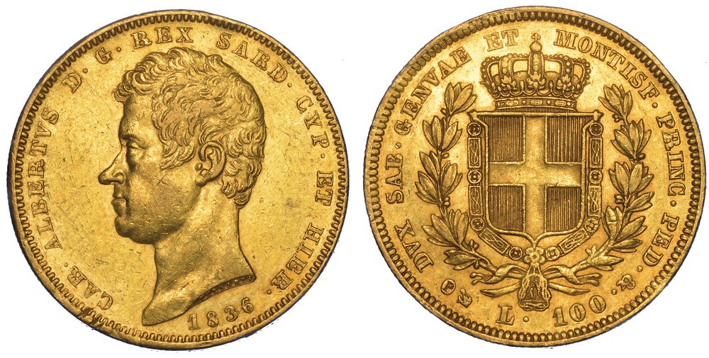 REGNO DI SARDEGNA. CARLO ALBERTO DI SAVOIA, 1831-1849. 100 Lire 1836. Genova.