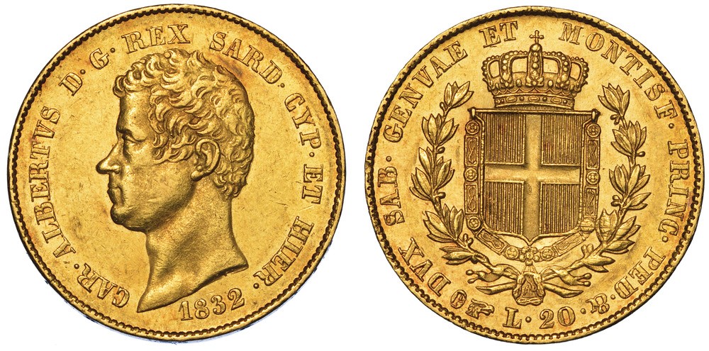 REGNO DI SARDEGNA. CARLO ALBERTO DI SAVOIA, 1831-1849. 20 Lire 1832. Torino.