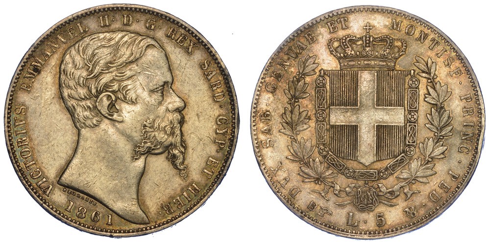 REGNO DI SARDEGNA. VITTORIO EMANUELE II DI SAVOIA, 1849-1861. 5 Lire 1861. Torino.
