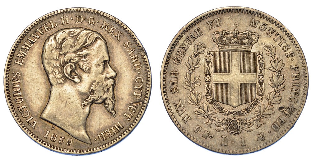 REGNO DI SARDEGNA. VITTORIO EMANUELE II DI SAVOIA, 1849-1861. Lira 1859. Torino.