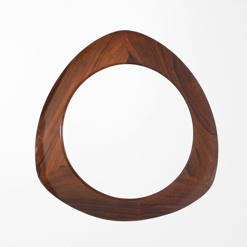 Cornice in legno lavorato e cristallo specchiato.