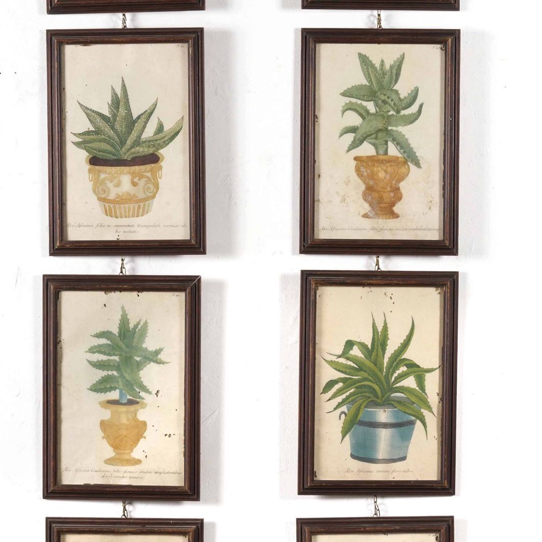 Otto stampe raffiguranti diverse specie di aloe