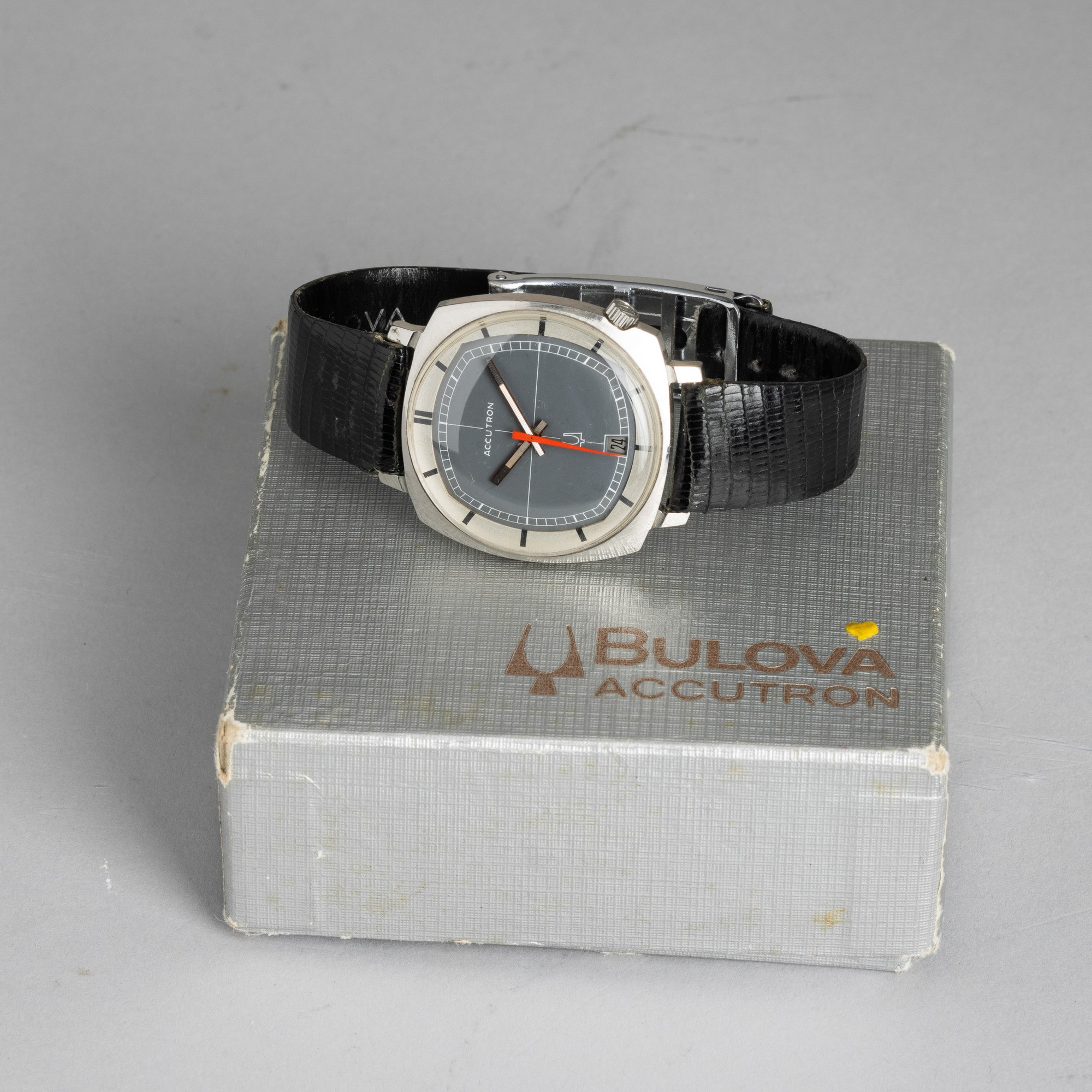 Accutron di forma con quadrante grigio antracite due toni, movimento elettromeccanico a diapason, 36 mm
