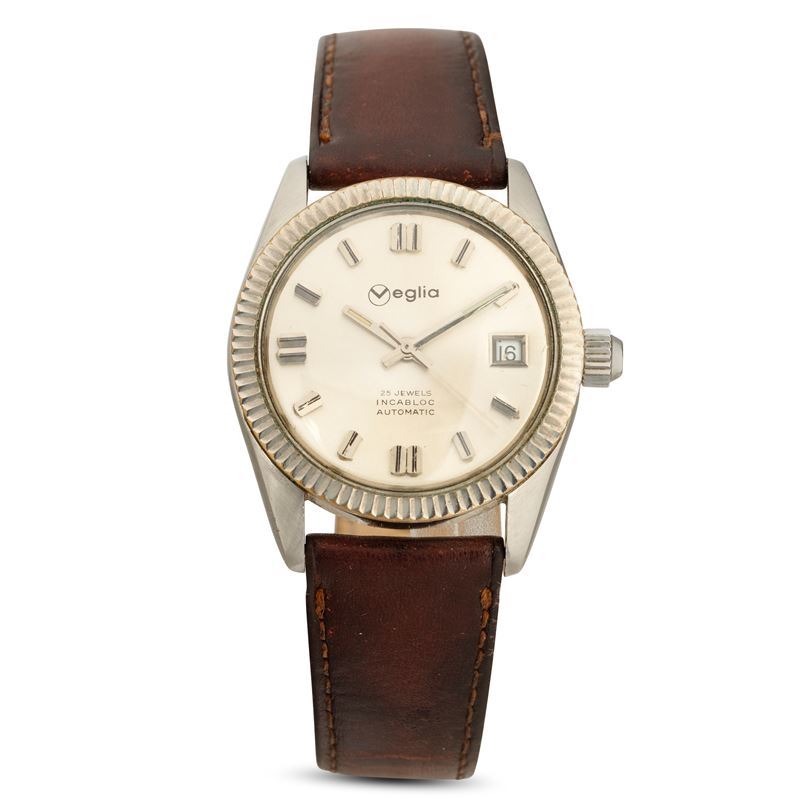 Orologio automatico in acciaio quadrante Argentè con indici applicati, ghiera zigrinata, 35 mm
