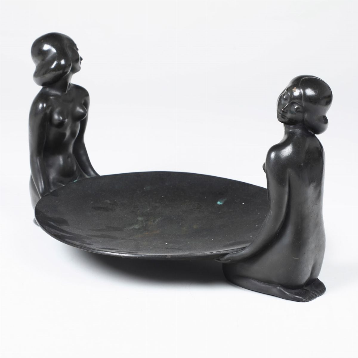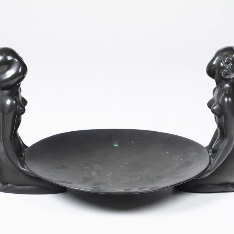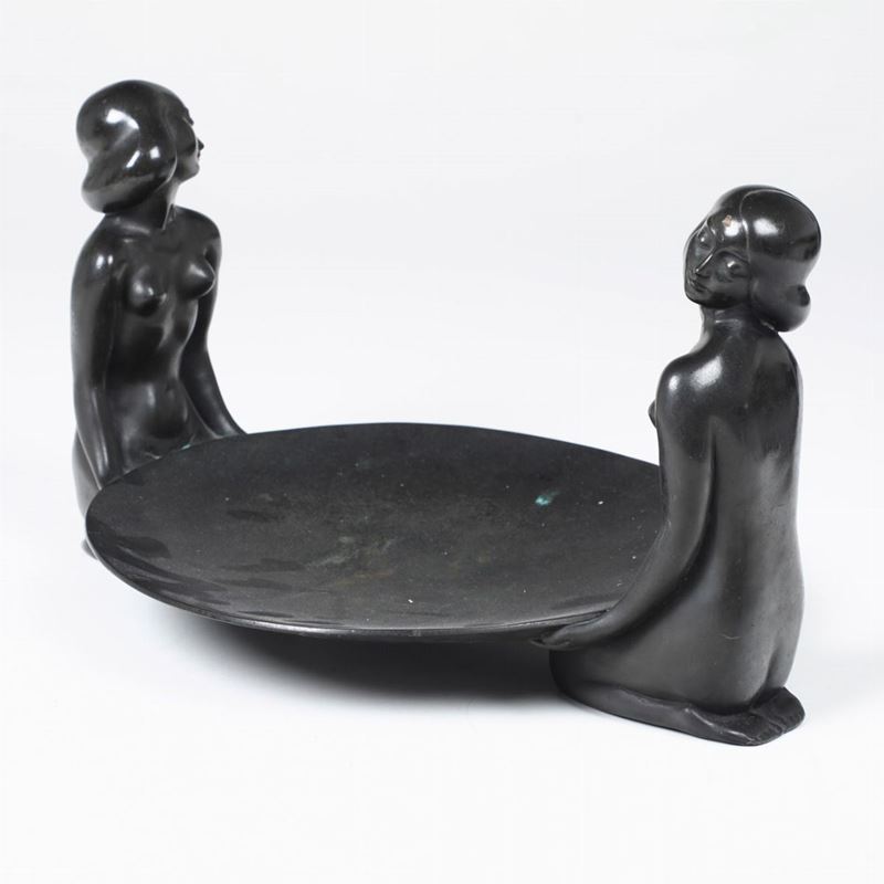 Centrotavola Deco in bronzo con figure femminili