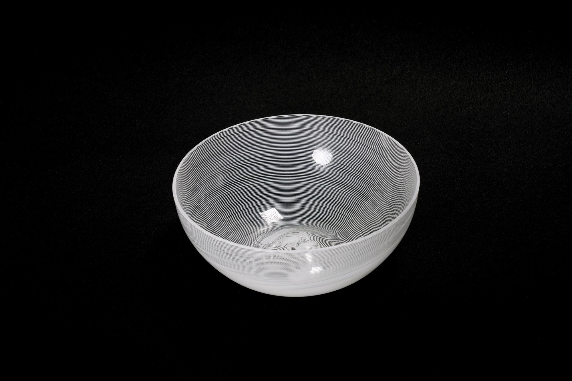 Ciotolina in vetro soffiato con decoro a filigrana lattimo