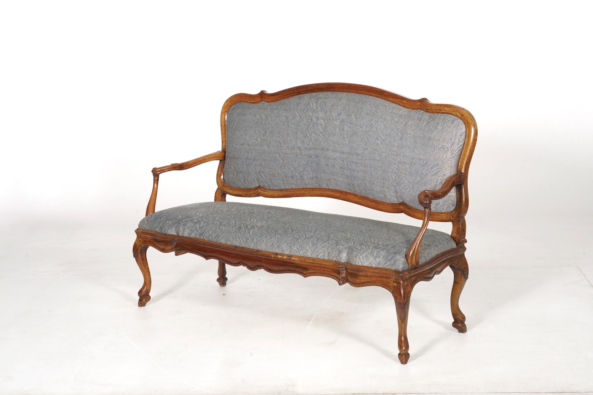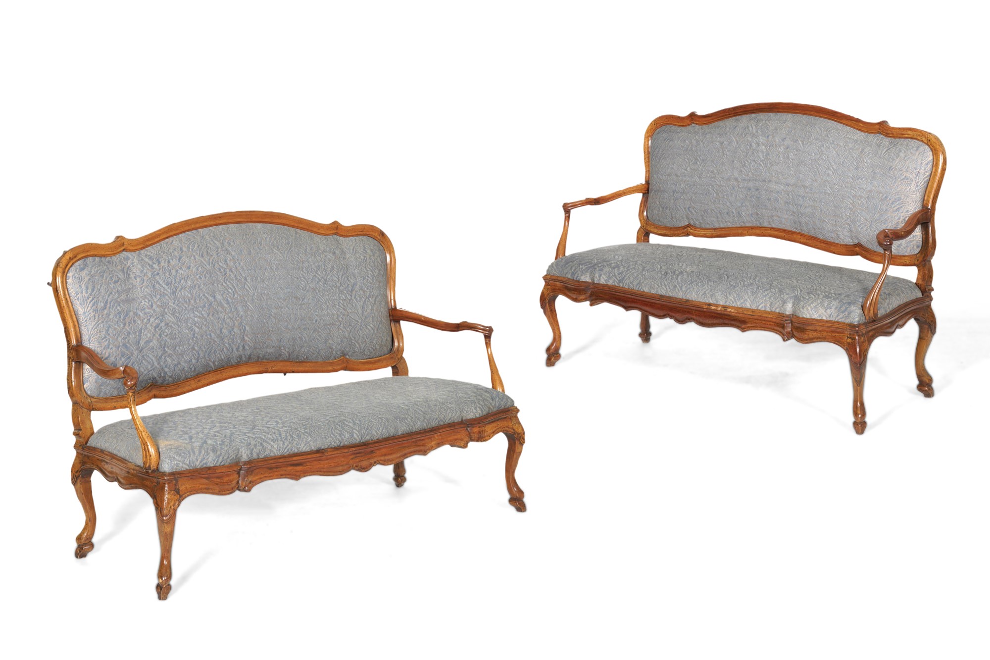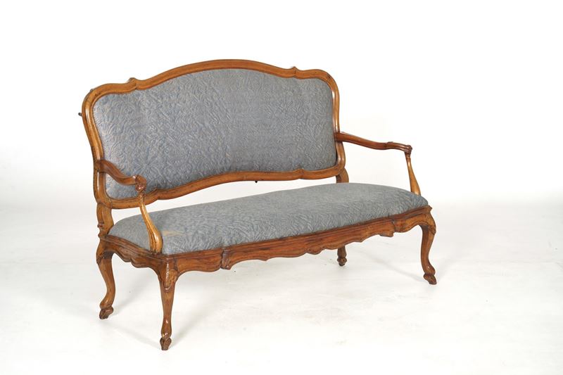 Coppia di divani in noce intagliato. XVIII secolo