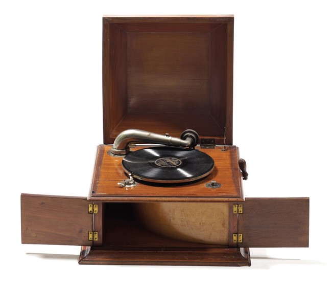 Grammofono con cassa in legno