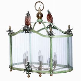 Lampadario a lanterna in metallo e vetro