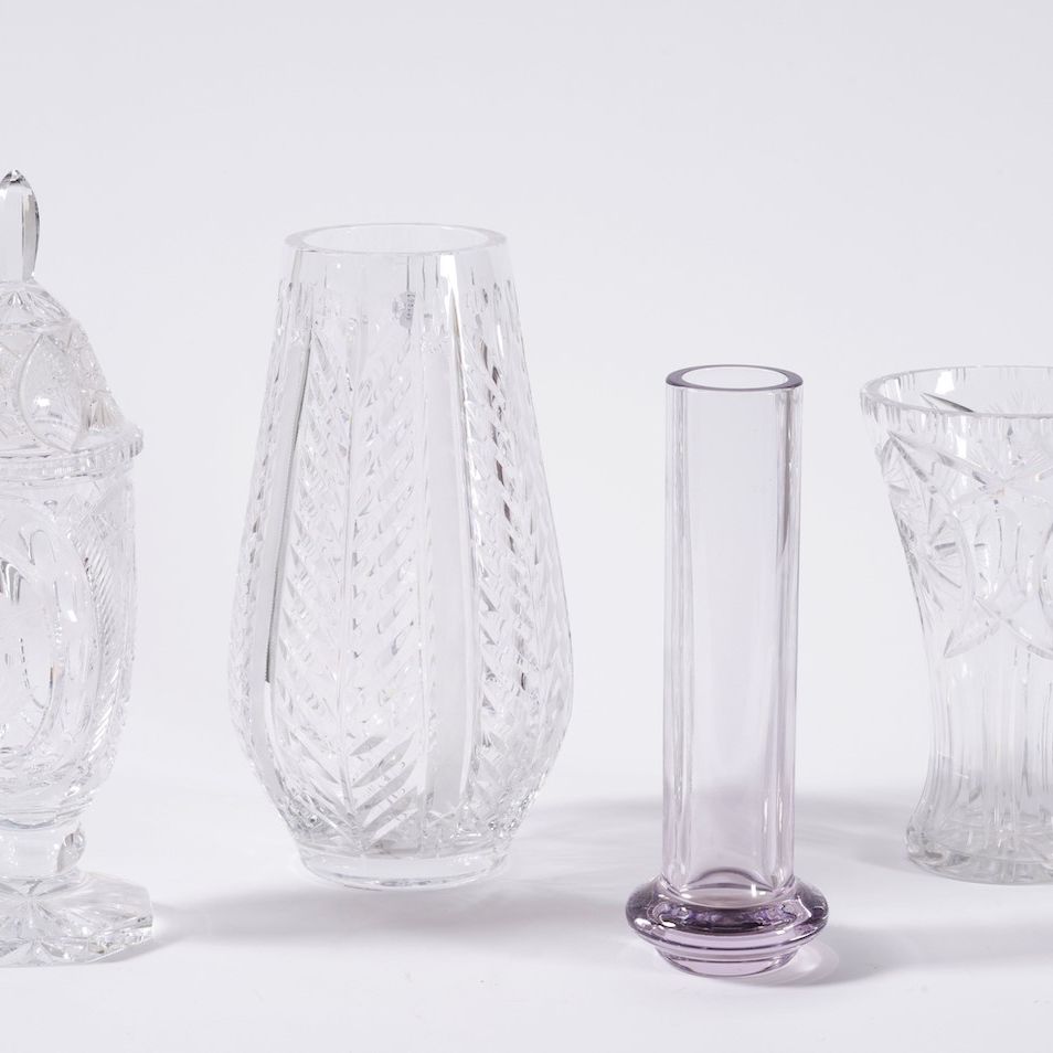 Lotto di 4 vasi in cristallo molato