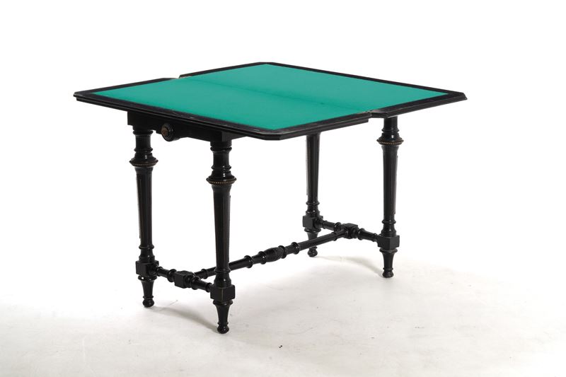 Tavolo da gioco in legno intagliato ed ebanizzato. XIX-XX secolo