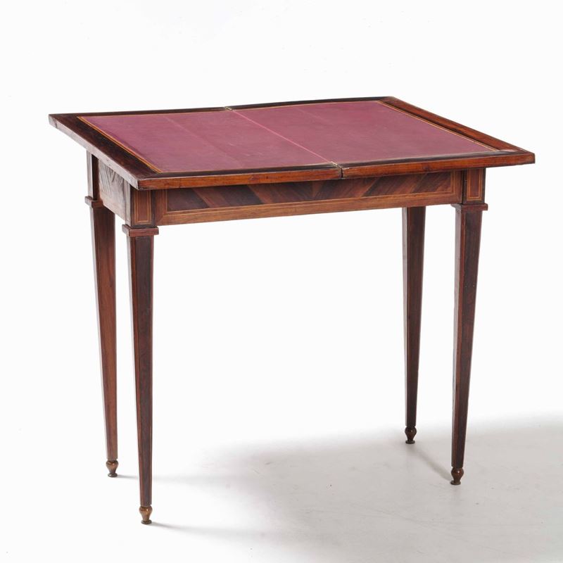 Tavolo da gioco lastronato e filettato. XVIII-XIX secolo