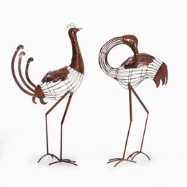 Coppia di uccelli del paradiso in metallo. XX secolo