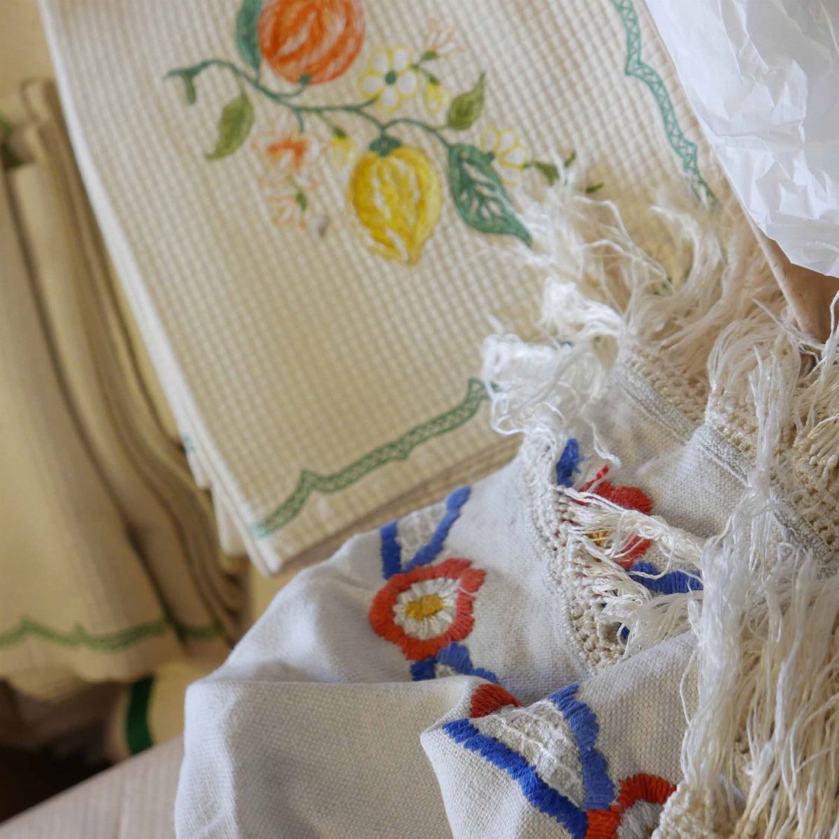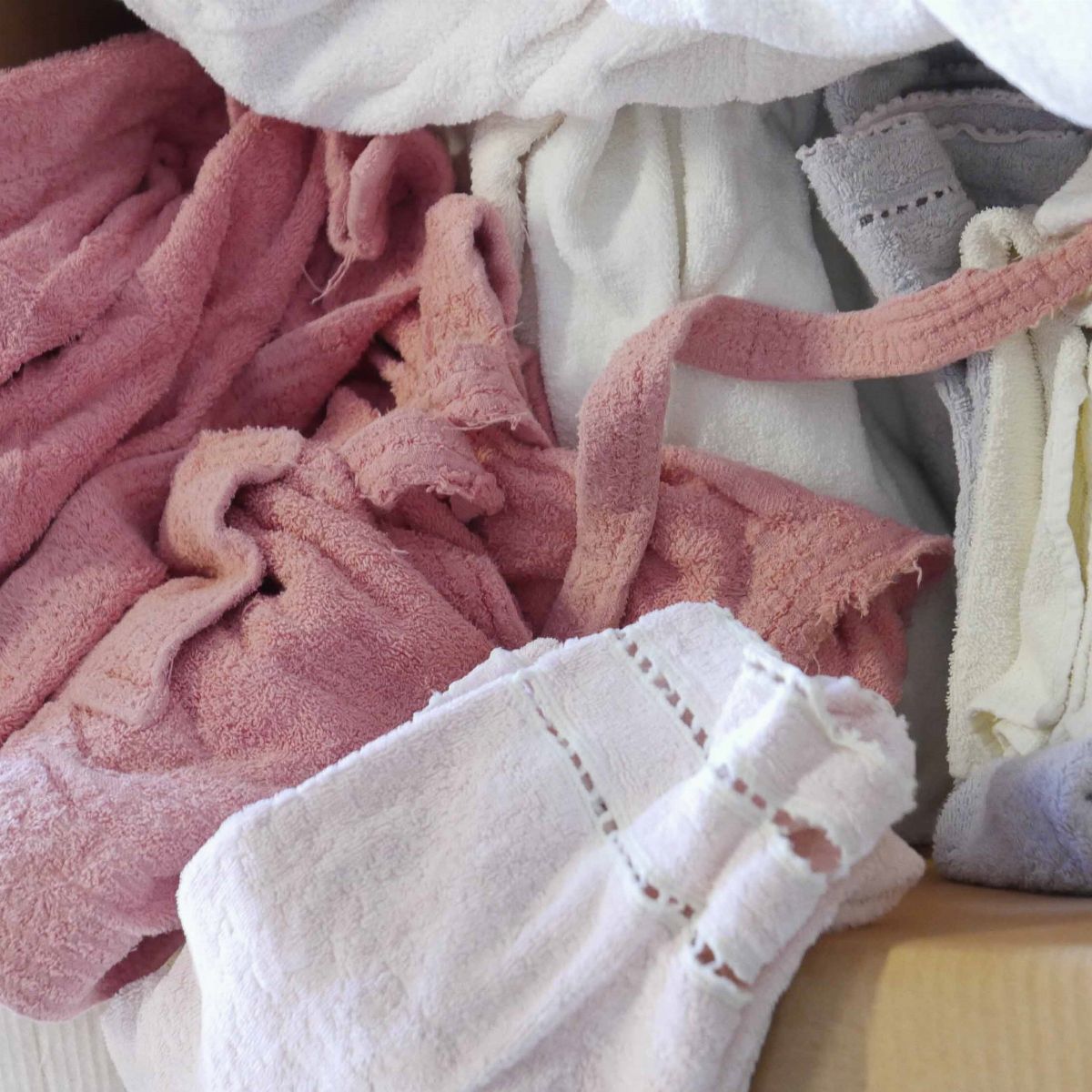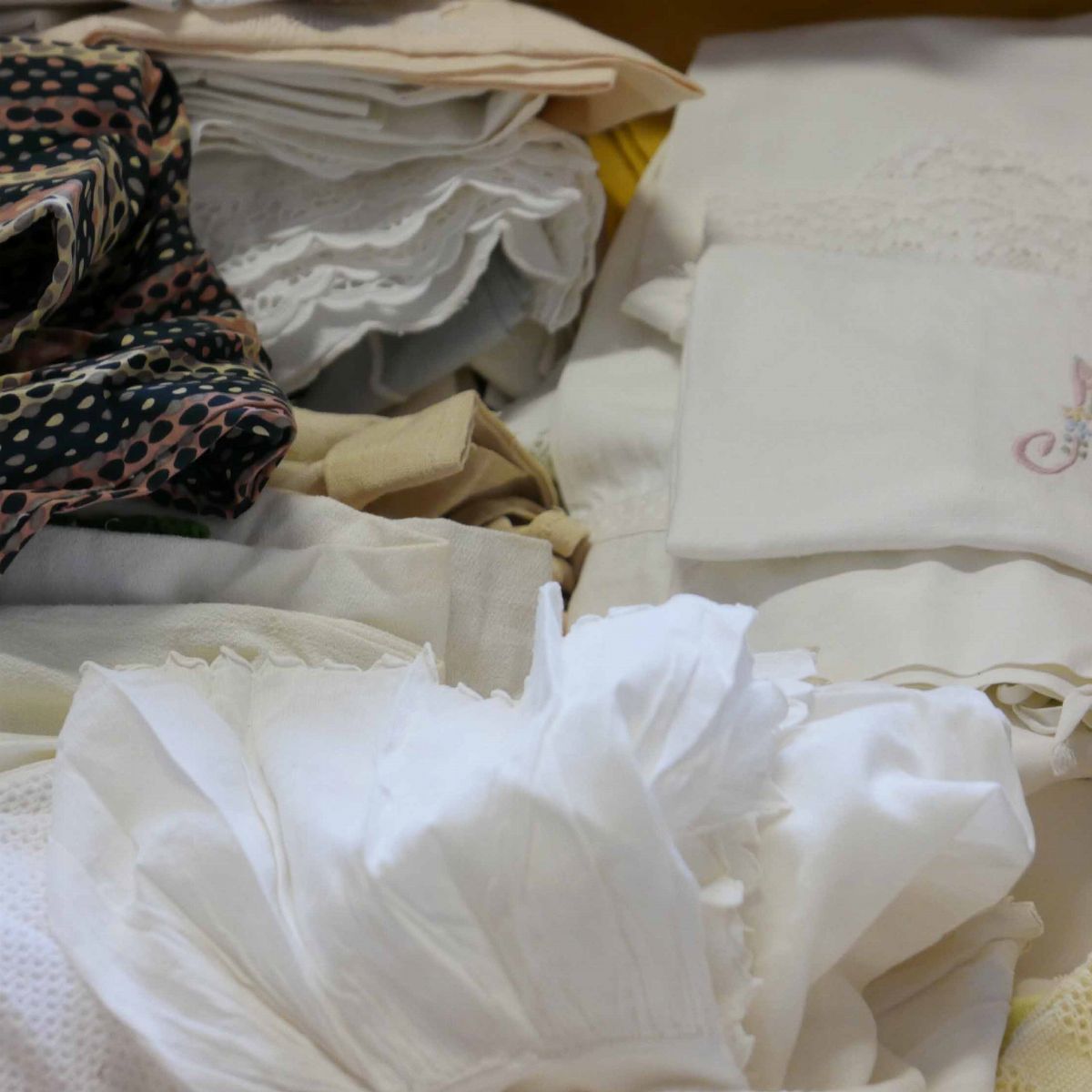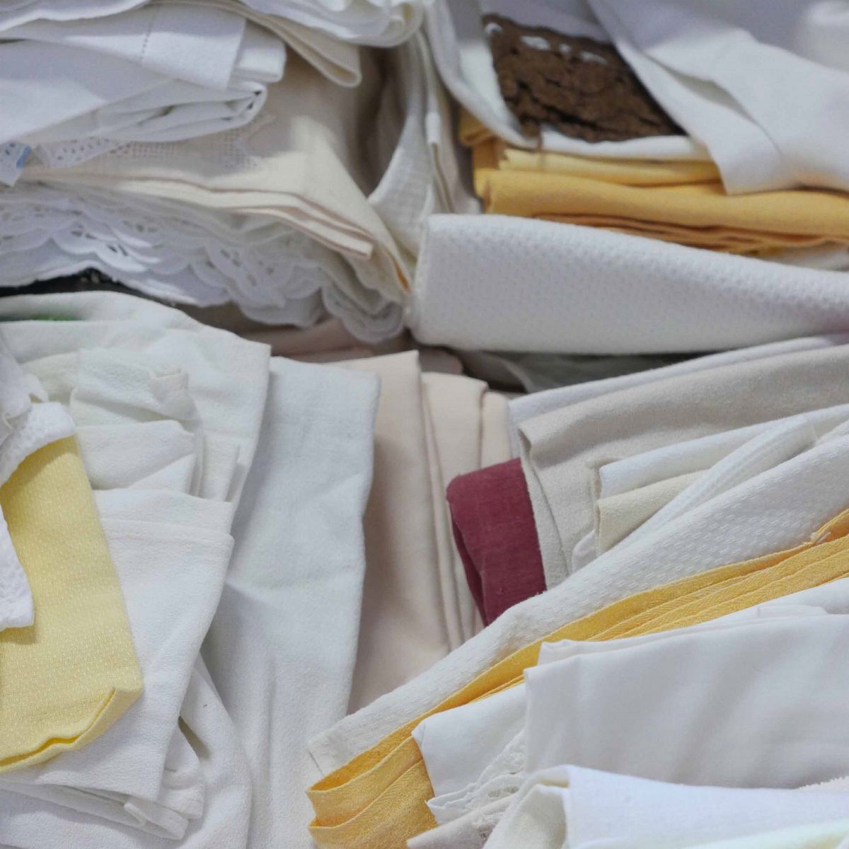 una contenente tovaglie, una copri sedie e copri divani, una asciugamani vari, una accappatoi ed asciugamani e una mista con federe asciugamani piccoli in lino e varie stoffe.