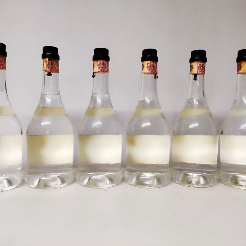 Etichette, capsule e confezioni originali ove presenti con segni d'usura del tempo