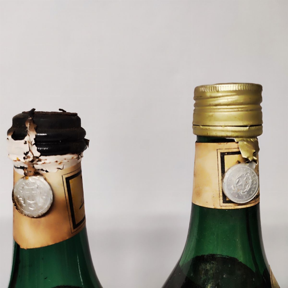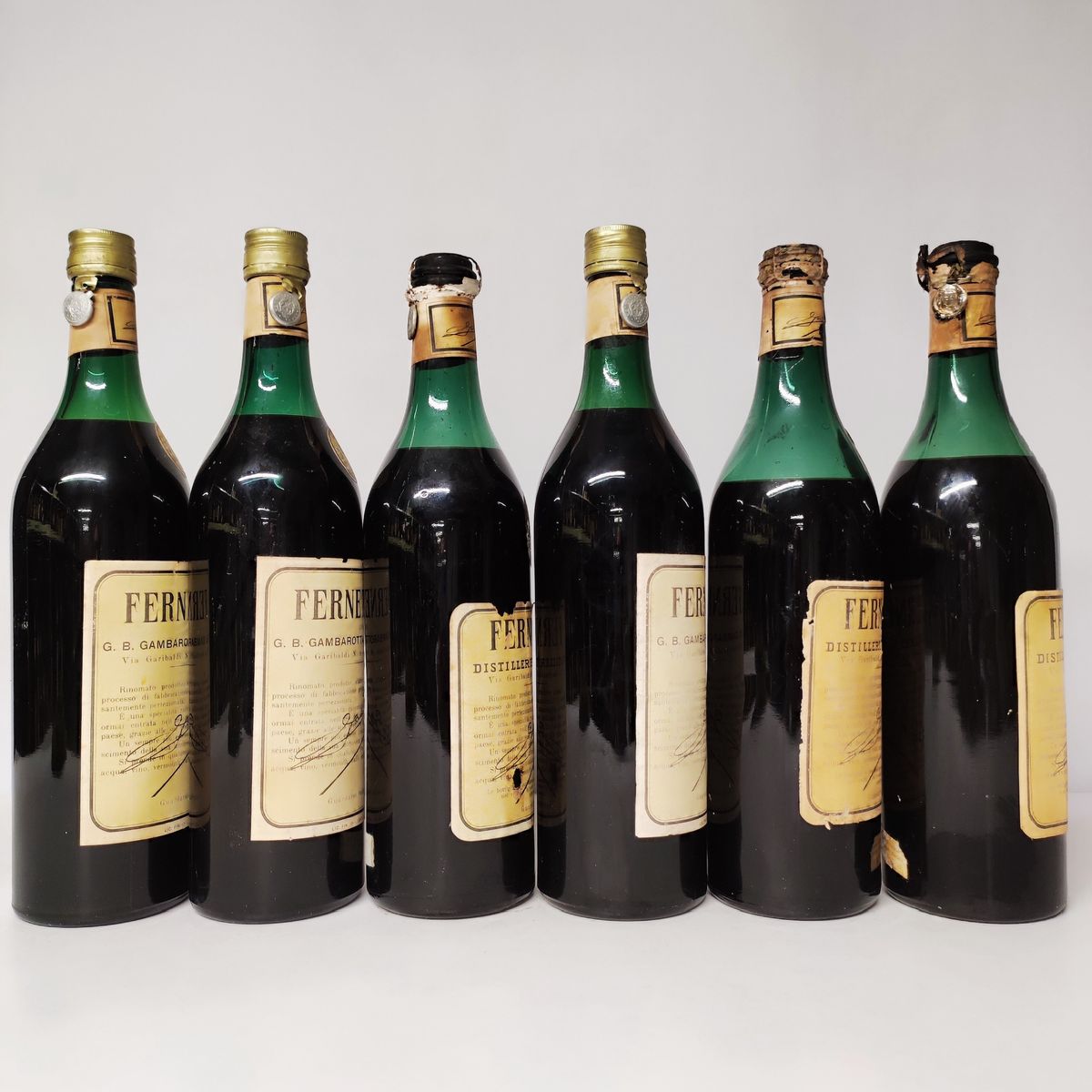 Etichette, capsule e confezioni originali ove presenti con segni d'usura del tempo