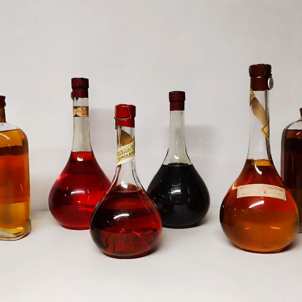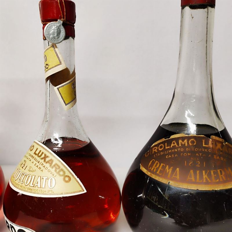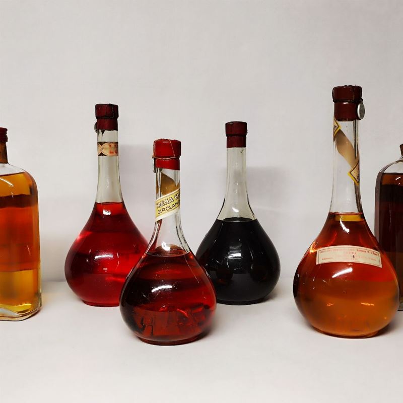 Etichette, capsule e confezioni originali ove presenti con segni d'usura del tempo
