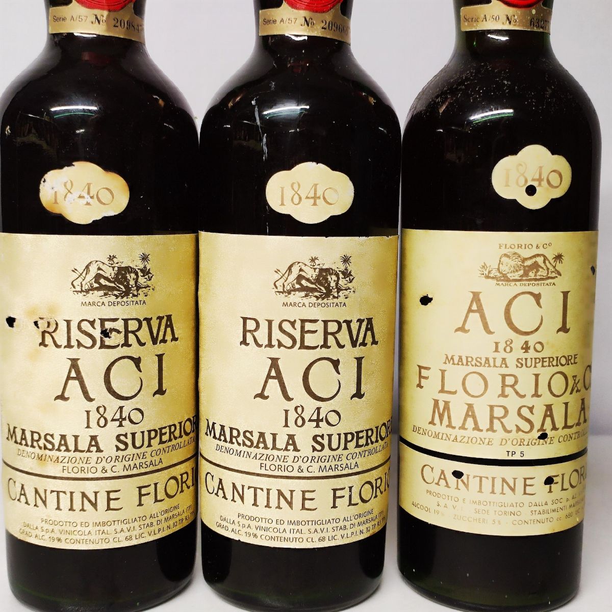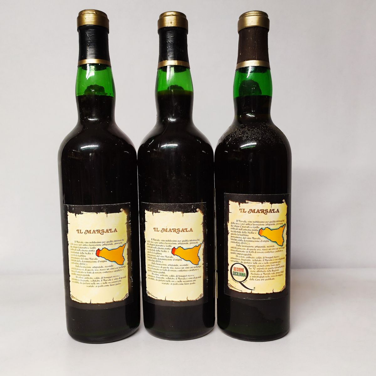 Etichette, capsule e confezioni originali ove presenti con segni d'usura del tempo