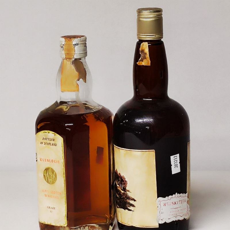 Etichette, capsule e confezioni originali ove presenti con segni d'usura del tempo