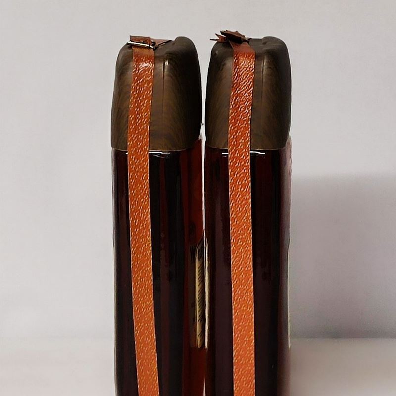 Etichette, capsule e confezioni originali ove presenti con segni d'usura del tempo