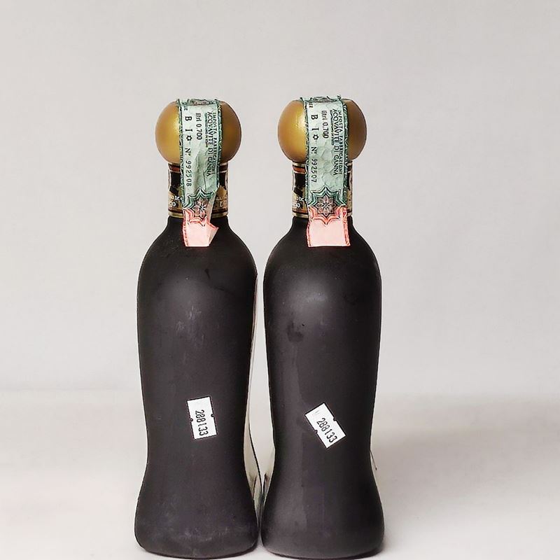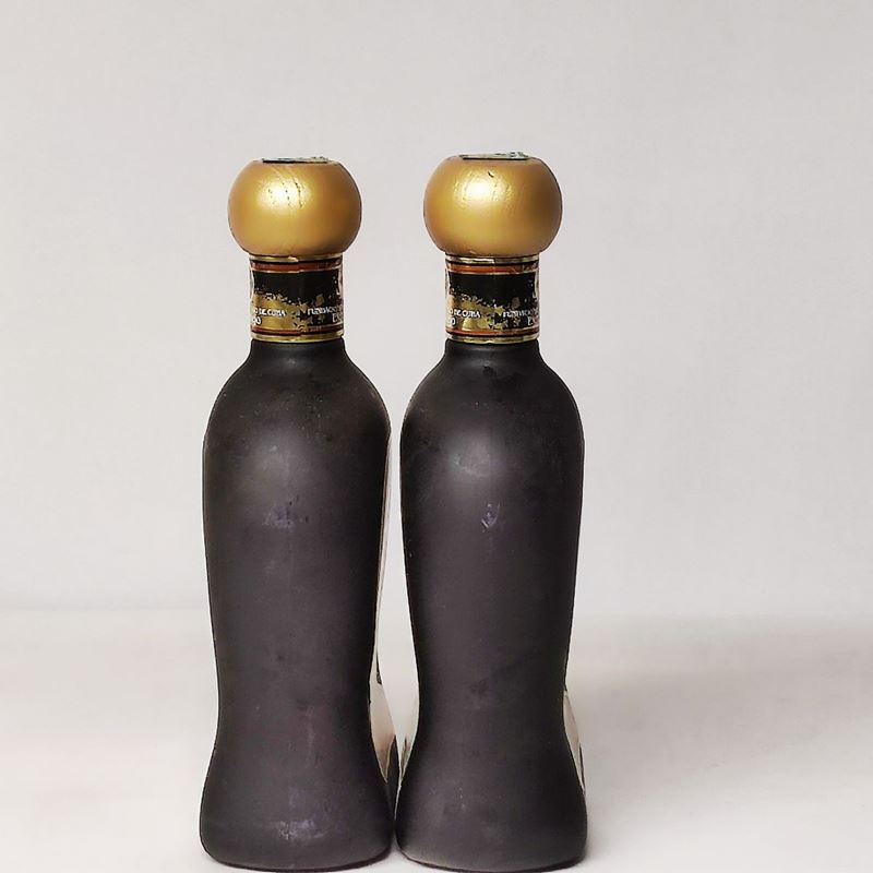 Etichette, capsule e confezioni originali ove presenti con segni d'usura del tempo