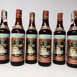 Etichette, capsule e confezioni originali ove presenti con segni d'usura del tempo