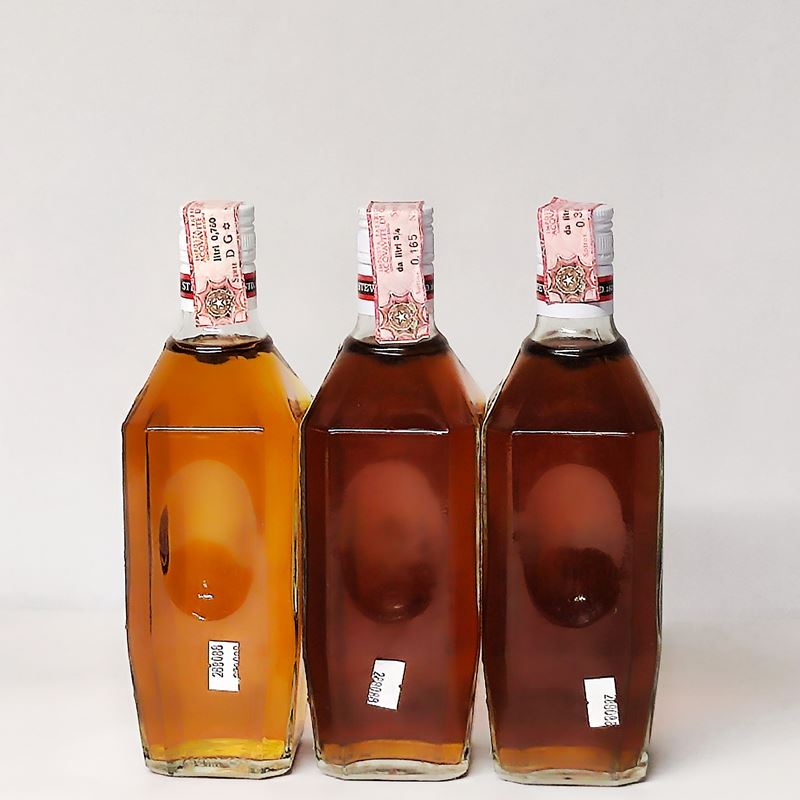 Etichette, capsule e confezioni originali ove presenti con segni d'usura del tempo