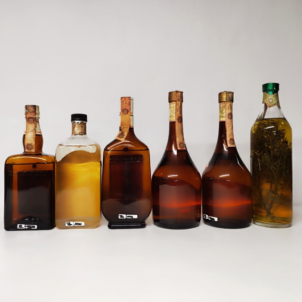 etichette e capsule con segni d'usura del tempo