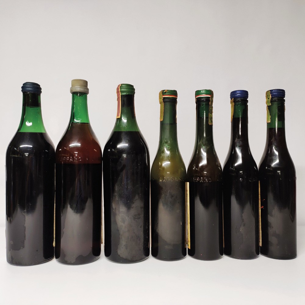 etichette e capsule con segni d'usura del tempo