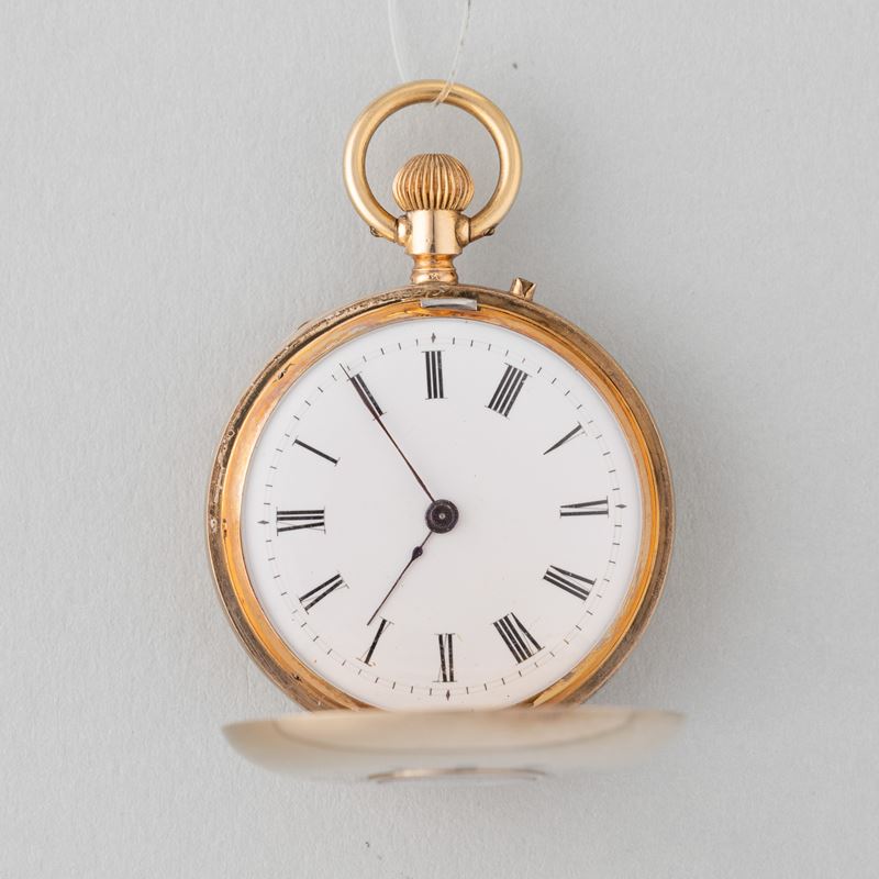 Cassa in oro 14 k, movimento con scappamento a cilindro, 1880 circa, carica remontoir