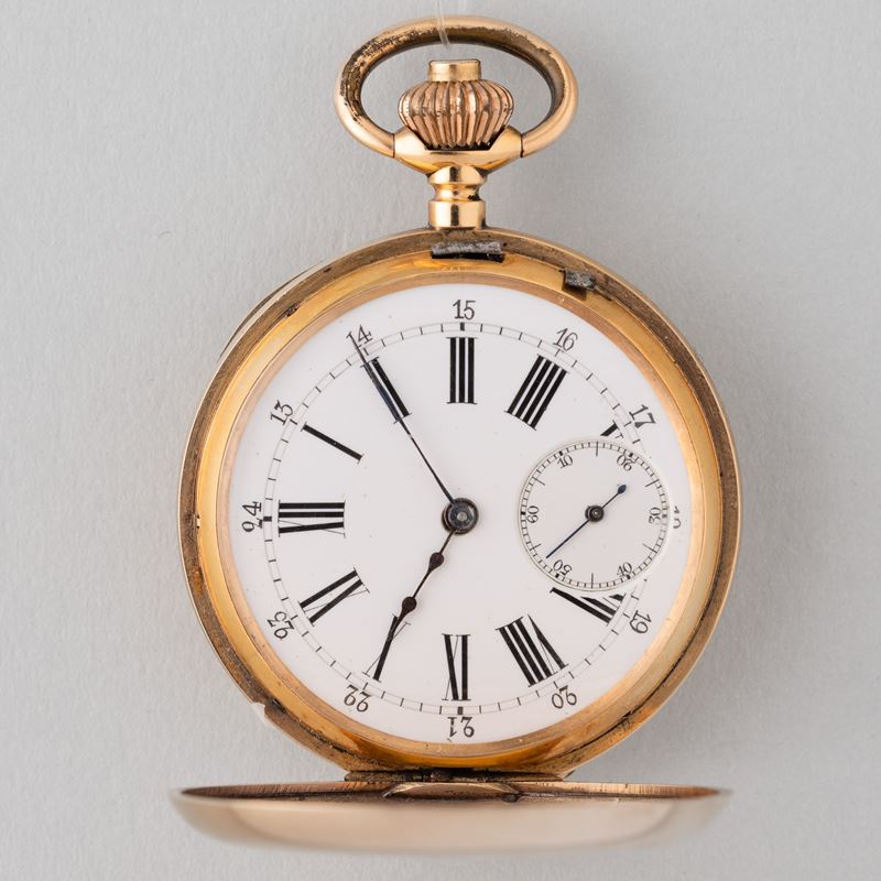 Cassa in oro 18 k, diam 43, movimento con scappamento ad ancora, vetro che si stacca