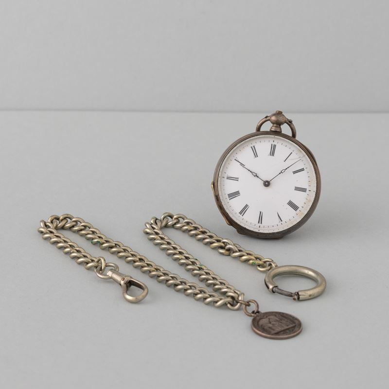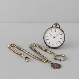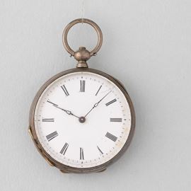 Cassa in argento, movimento con scappamento a cilindro, carica a chiavetta.