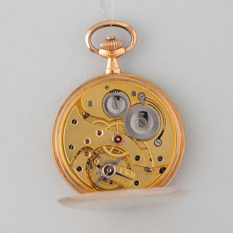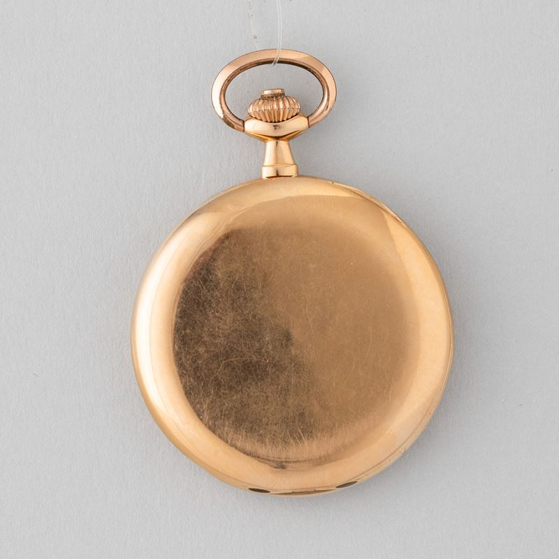 Cassa savonette in oro 18 k, quadrante in oro, movimento con scappamento ad ancora, 1910 circa