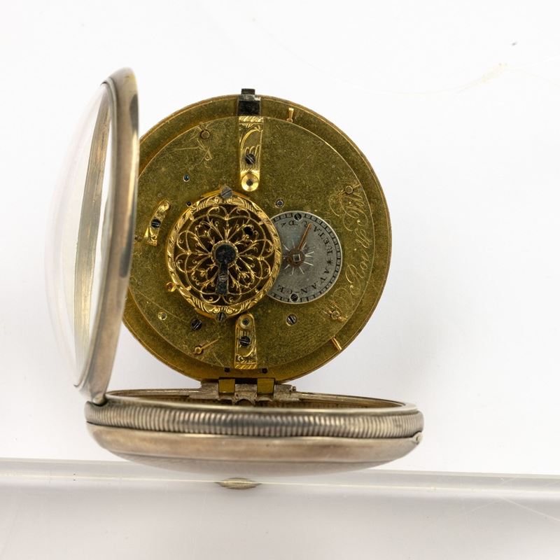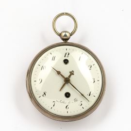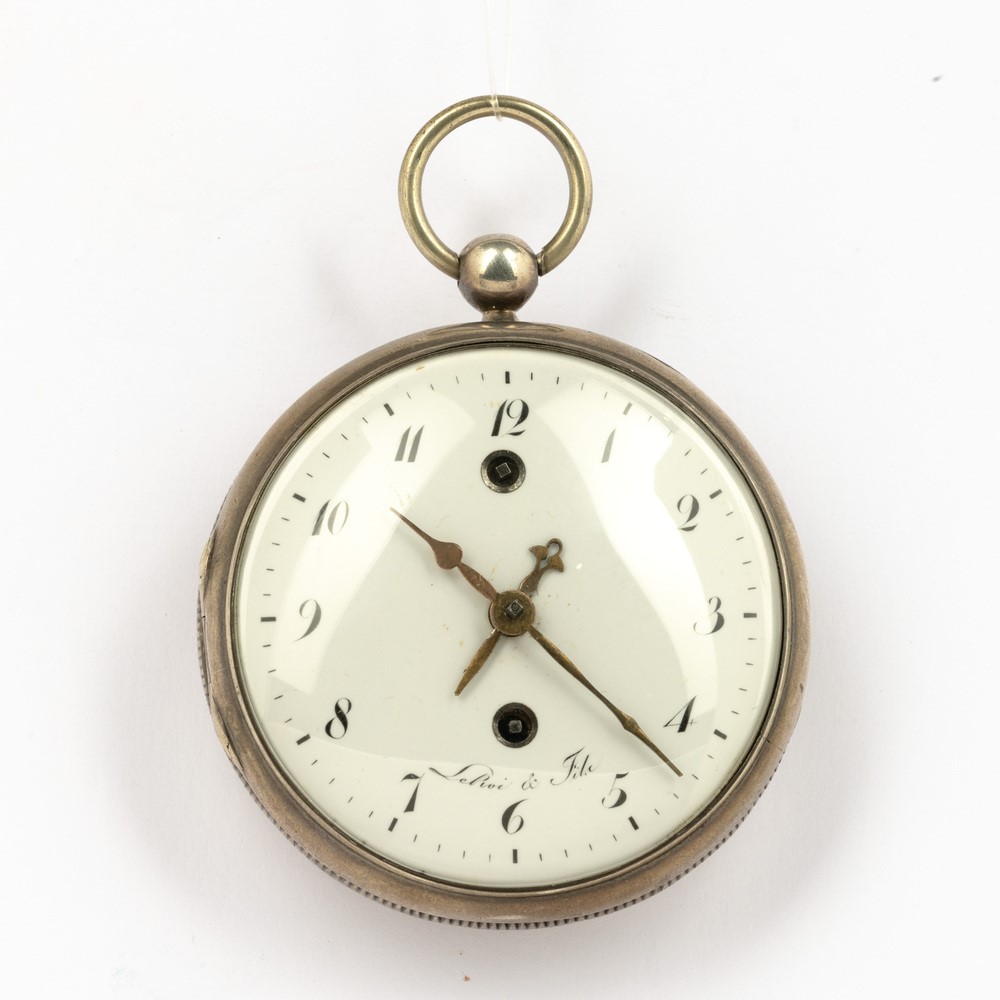 Svegliarino "Leroi et Fills" francese a verga, con catena econoide,, cassa in argento, svegliarino su campana.