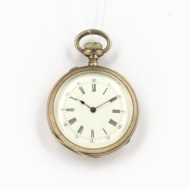 Orologio da collo da donna con cassa in argento, quadrante in smalto bianco, movimento con scappamento a cilindro