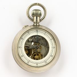 Orologio da tasca cassa in metallo double-face, crono monopulsante, con quadrante al retro